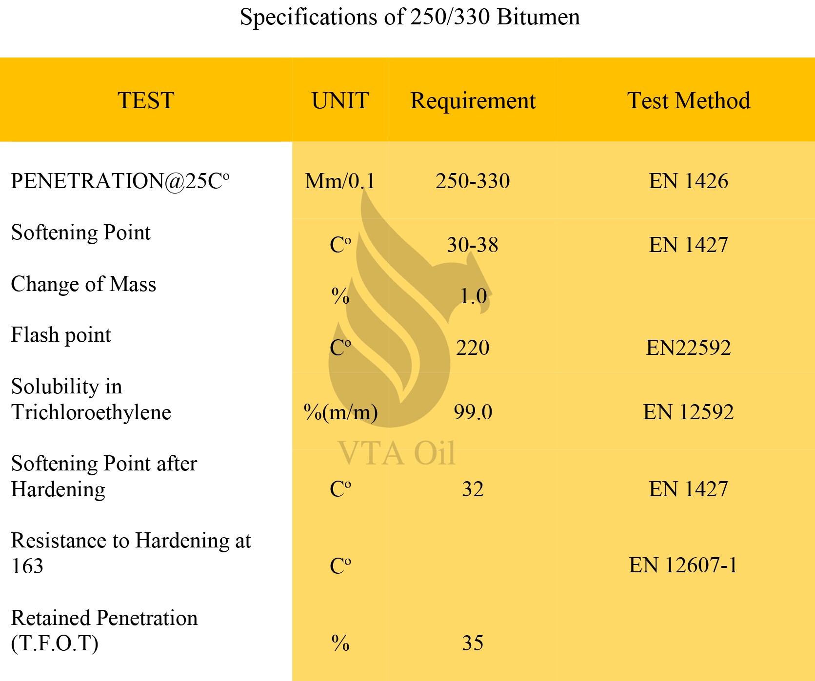 Bitumen grade 250/330, also known as penetration grade bitumen, is commonly used in road construction and the production of asphalt pavements. Here are some key points about this grade:
